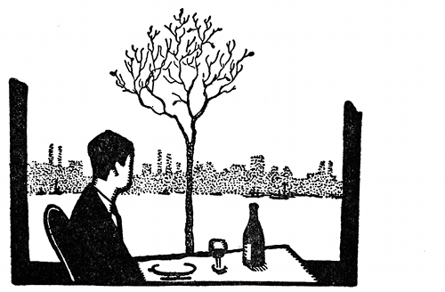 Such a woman at once comes to my mind, with dark hair and grey-blue eyes, the corners of whose mouth I am continually watching because it is only there I find the meaning of her eyes, for she is a sphinx, and I do not yet know if what she hides is a secret or a sense of humour. You will say that that means nothing, and that she is quite invisible [pg 015] to you; but you do not know her, and I do—at least, I know that much of her. And with her it seems to me that I could dine only at that table by the windows where I could turn from her eyes to the slow-moving English river, and the specks of men and trams, which are all that the leaves of trees will let me see of the Embankment. Perhaps I would tell her of that novel which I once began to write, but could never finish nor have any heart to try again; for it began just here at this table where we are now sitting, but the man was alone, and if he ever lived outside my halting pages and had the finishing of my novel, he would put himself here again at the end, with you sitting in front of him. For that is the whole purpose of the novel, which I never realised till this moment, that once a young man was sitting here alone and wondering why that should be and what he should do, and in the end he was sitting here again with a woman for whom his passion had died, but whose eyes still made him talk so that he could not see the slow darkening of the river, or hear the emptying of the restaurant, until at last she laughed, and he [pg 016] had to stop because of the waiters who hovered round the table to relay it for the bored people who would come in from the theatres for supper. But all this I had never realised till I told you of it, and perhaps now I shall one day finish it, and call it "Nadine," for that is your name in the novel.