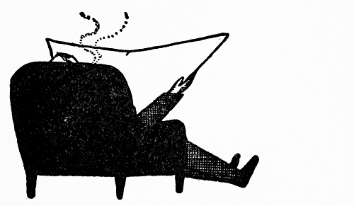 Once there, I resigned myself to a delicious and conscious indolence. My thoughts drifted up with my cigarette smoke, and faded with it. My special place was on the divan in the corner of the large room, under a long shelf of neatly arranged first editions, from which I would now and again pick one, finger it lazily, mutter just audibly that I had bought that same book half-a-crown [pg 078] cheaper, and relapse into silence. If uncongenial visitors dropped in, I would abuse Nikolay's hospitality by at once turning over on my left side and going to sleep until they had gone. But generally no one came, and we were alone and silent.
