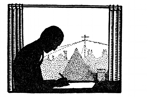 "Dinner that night passed off quite well considering the unsettled climatic conditions aforesaid. Myself didn't contribute much, but my guardian and Raoul talked smoothly away about anything that came, while Madame, our hostess, smiled sweetly at us all, on brooding me in particular.... Quite early I made for bed; the old man and I hadn't exchanged a word all evening, and his 'good night' was a little bow, and mine cold. As I passed Raoul he cleverly put a small piece of paper into my hand. Upstairs in my room, that piece of paper said that he would be going away in a day or two, and would I ride with him to-morrow morning before breakfast, at seven o'clock. Of course I would.