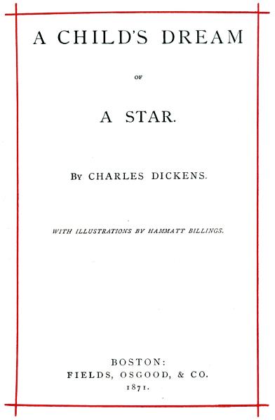Now, these rays were so bright, and they seemed to make such a shining way from earth to heaven, that when the child went to his solitary bed, he dreamed about [Pg 9]the star; and dreamed that, lying where he was, he saw a train of people taken up that sparkling road by angels. And the star, opening, showed him a great world of light, where many more such angels waited to receive them.