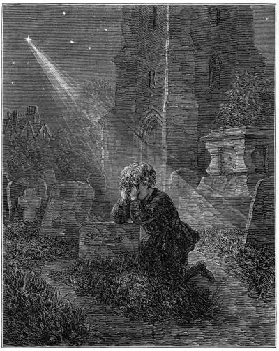 And so the time came, all too soon! when the child looked out alone, and when there was no face on the bed; and when there was a little grave among the graves, not there before; and when the star made long rays down towards him, as he saw it through his tears.