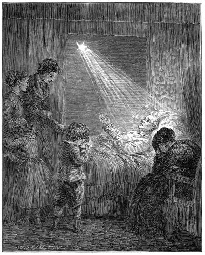 She was turning hopefully away, when the child stretched out his arms, and cried, “O sister, I am here! Take me!” And then she turned her beaming eyes upon him, and it was night; and the star was shining into the room, making long rays down towards him as he saw it through his tears.