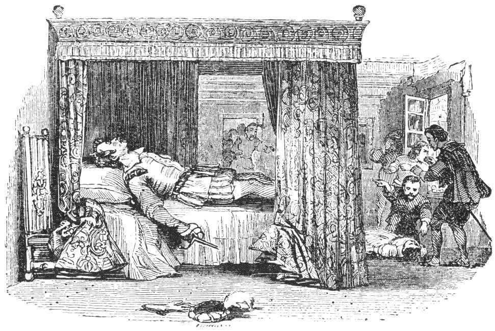 As he did not appear among us at his usual hour next morning, we knocked gently at his door. No answer being given, it was softly opened; and then, to our surprise, we saw him seated before the ashes of his fire, with a little table I was accustomed to set at his elbow when I left him for the night at a short distance from him, as though he had pushed it away with the idea of rising and retiring to his bed. His crutch and footstool lay at his feet as usual, and he was dressed in his chamber-gown, which he had put on before I left him. He was reclining in his chair, in his accustomed posture, with his face towards the fire, and seemed absorbed in meditation,—indeed, at first, we almost hoped he was.