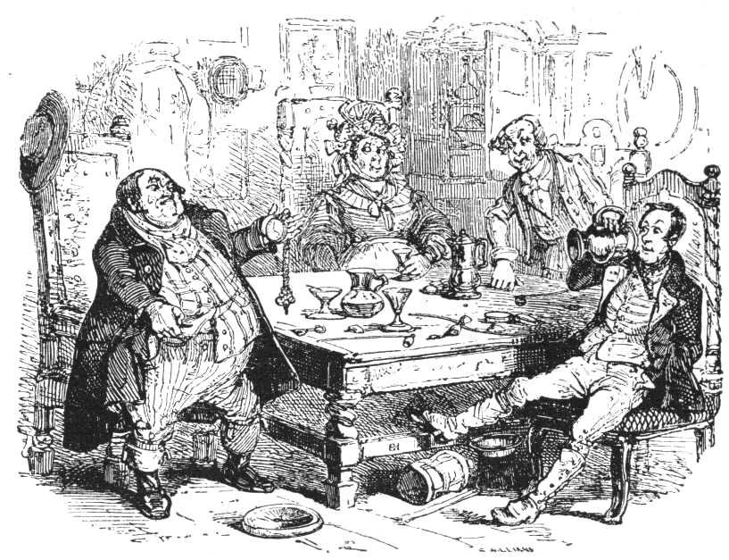 He was a very substantial citizen indeed. His face was like the full moon in a fog, with two little holes punched out for his eyes, a very ripe pear stuck on for his nose, and a wide gash to serve for a mouth. The girth of his waistcoat was hung up and lettered in his tailor’s shop as an extraordinary curiosity. He breathed like a heavy snorer, and his voice in speaking came thickly forth, as if it were oppressed and stifled by feather-beds. He trod the ground like an elephant, and eat and drank like—like nothing but an alderman, as he was.
