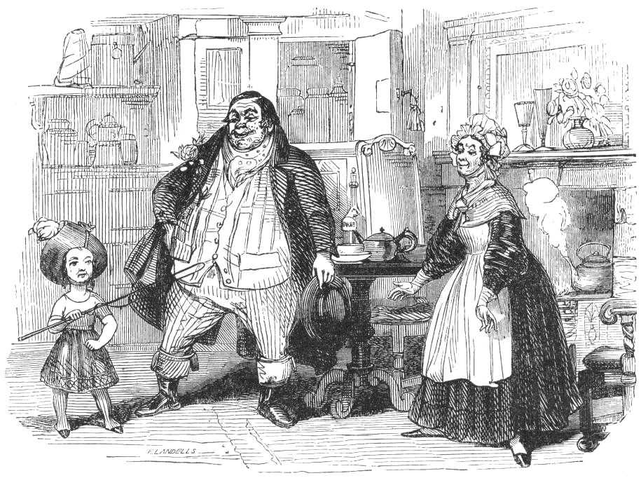 ‘No, Tony, not you,’ said Mr. Weller. ‘I hope it warn’t you, Tony. It must ha’ been that ’ere naughty little chap as comes sometimes out o’ the empty watch-box round the corner,—that same little chap as wos found standing on the table afore the looking-glass, pretending to shave himself vith a oyster-knife.’