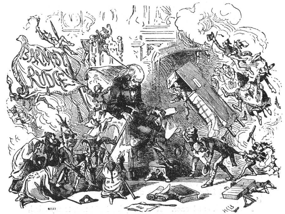[306] Old Curiosity Shop is continued from here to the end without further break. Master Humphrey is revived thus at the close of the Old Curiosity Shop, merely to introduce Barnaby Rudge.