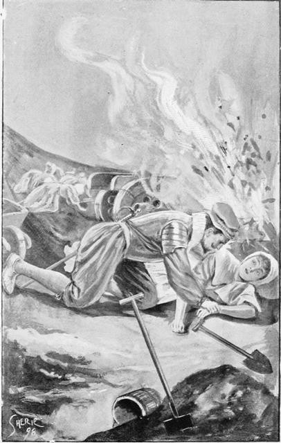 bounding and crashing: upon the head of the foremost Moor.Three of their number lay stretched dead upon the ground. A number more were badly hurt; and all were flying from the stairs, which threatened to become a veritable death-trap for all who tried to mount.