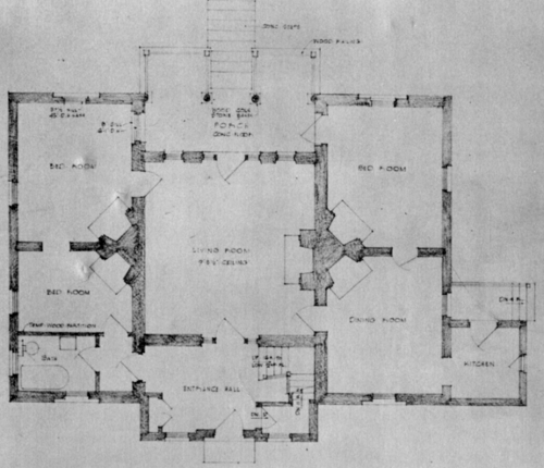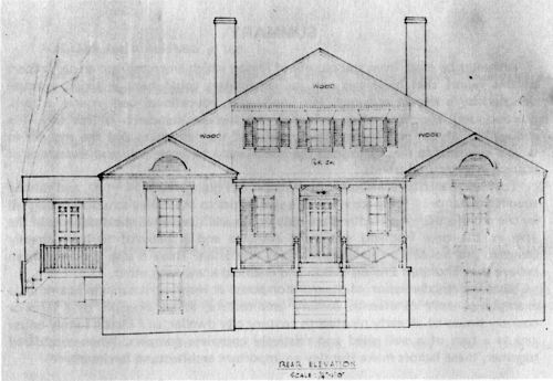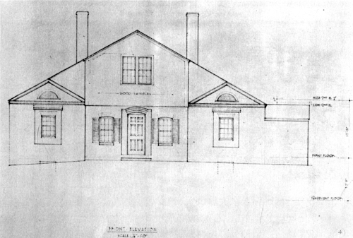 Figure 28. Huntley, front elevation, 1946. Edward M. Pitt, Architect. Blueprints