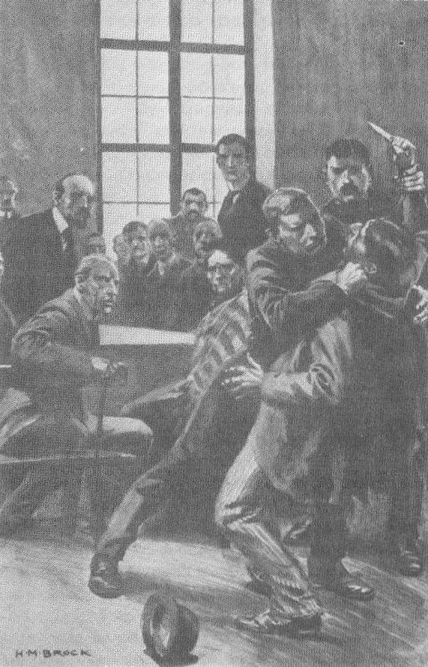 Suddenly he let go the handle, and with a horrible cry thrust his hand under the skirt of his coat and rushed at Thorndyke. But the superintendent was ready for this. There was a shout and a scuffle, and then Petrofsky was born down, kicking and biting like a maniac, while Miller hung on to his right hand and the formidable knife that it grasped.