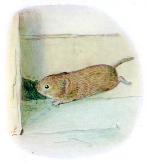 Up jumped the cook on a chair, exclaiming "A mouse! a mouse! Call the cat! Fetch me the poker, Sarah!" Timmy Willie did not wait for Sarah with the poker; he rushed along the skirting board till he came to a little hole, and in he popped. |