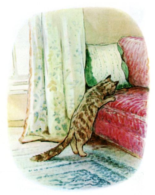 It was just the same next day. An excellent breakfast was provided—for mice accustomed to eat bacon; but Timmy Willie had been reared on roots and salad. Johnny Town-mouse and his friends racketted about under the floors, and came boldly out all over the house in the evening. One particularly loud crash had been caused by Sarah tumbling downstairs with the tea-tray; there were crumbs and sugar and smears of jam to be collected, in spite of the cat. |