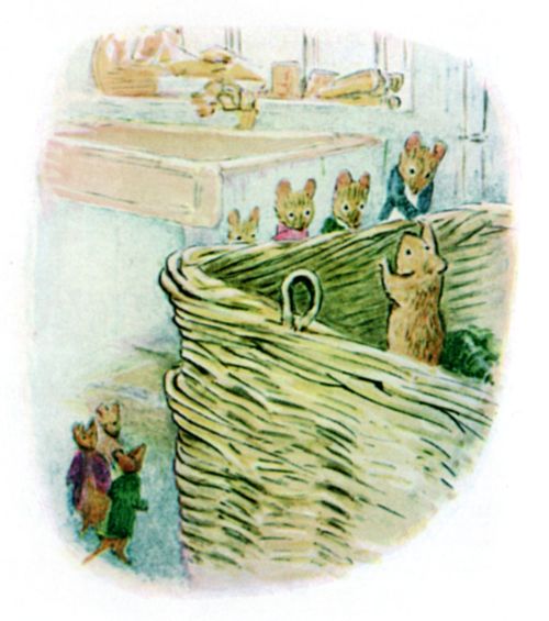 Johnny Town-mouse was born in a cupboard. Timmy Willie was born in a garden. Timmy Willie was a little country mouse who went to town by mistake in a hamper. The gardener sent vegetables to town once a week by carrier; he packed them in a big hamper. |