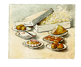 of Tom Thumb and Hunca Munca. They broke up the pudding, the lobsters, the