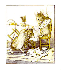 "It is not boiled enough; it is hard. You have a try Hunca Munca." |