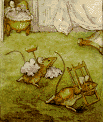 under the coal-box; but Hunca Munca has got the cradle and some of Lucinda's