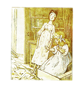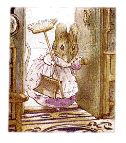 awake - Hunca Munca comes with her dust-pan and her broom to sweep the Dollies'