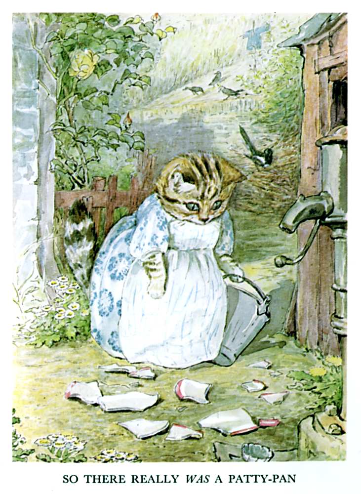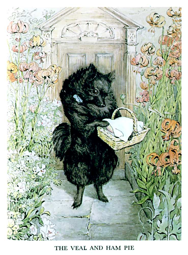 "I am dreadfully afraid it will be mouse!" said Duchess to herself—"I really couldn't, couldn't eat mouse pie. And I shall have to eat it, because it is a party. And my pie was going to be veal and ham. A pink and white pie-dish! and so is mine; just like Ribby's dishes; they were both bought at Tabitha Twitchit's."