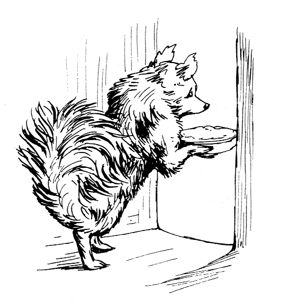 "A pink and white pie-dish—and you shall eat it all. 'You' means me—then Ribby is not going to even taste the pie herself? A pink and white pie-dish! Ribby is sure to go out to buy the muffins.... Oh what a good idea! Why shouldn't I rush along and put my pie into Ribby's oven when Ribby isn't there?"