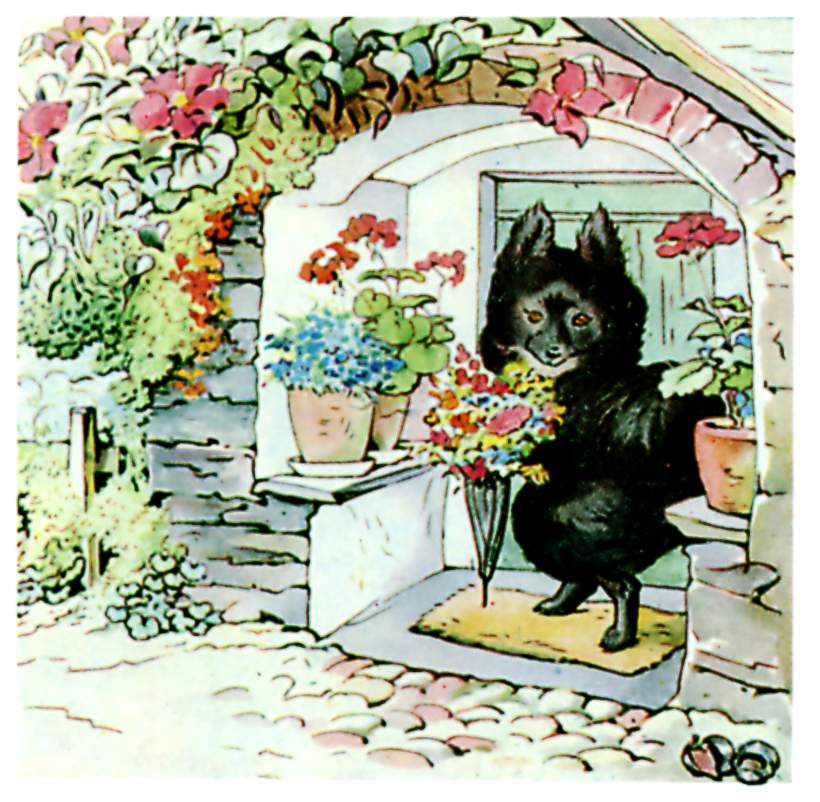 Duchess went home and brushed her beautiful black coat; and then she picked a bunch of flowers in her garden as a present for Ribby; and passed the time until the clock struck four.