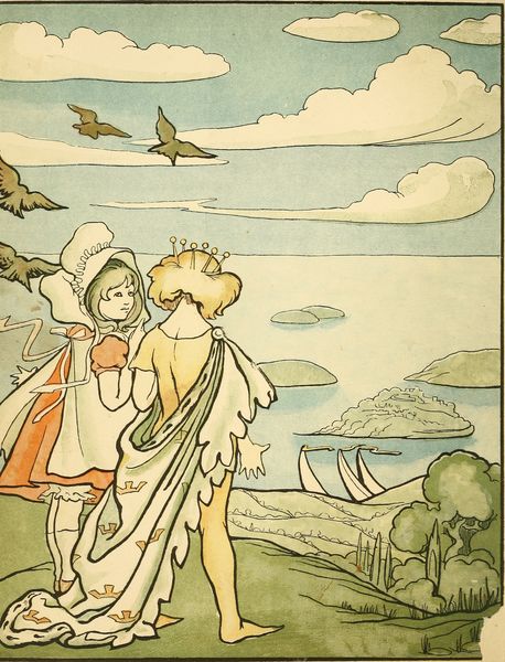 So Kit made her another bow and marched away again down the hill-side, whistling the same tune as before; and all the birds of the air came flying along when they heard it,[8] and they flew in front of him to show him the way, and he followed them over meadows and streams and orchards and cornfields, until they brought him to the walls of King Hurlyburly's city. And they would not have left him then, if he had not pointed out to them, most politely, that although it was very obliging of them to have come so far with him, he would find it a little inconvenient to travel any further with so many companions. So they flew away again; and Kit marched into the city and up to the gates of the King's palace.