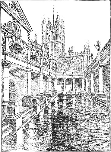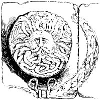 [6] That the Romans knew the city we call Bath as Aquæ Solis—the “Waters of the Sun”—we learn from the ancient history of Britain. A highly interesting light upon this is furnished by the sculptured stone discovered some years since, and now in the local museum, which shows a decorative representation of the head of the Sun God from whose face radiate sun-rays, alternately with serpents.
