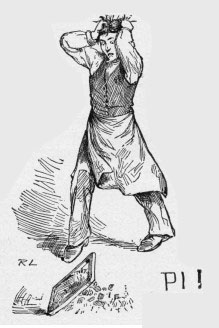 The moulds are like Miss Fanny’s wax-fruit moulds. They’re made of plaster Paris, and they’re round outside, and they have the shape of what the man wants to make on the inside, and they’re in two pieces. Little things like cups are made in one mould; but big things like pitchers are made in two or three pieces, in two or three moulds, and then put together. Handles and spouts and such things are made separately in little moulds and put on afterwards.