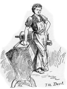 And do you know what the potter’s-wheel is? It’s as old as the hills and it’s in the Bible, but I guess everybody don’t know what it is. It looks as if it was made of hard, smooth, baked white clay, and is something like a grindstone, only not half as thick. The grindstone stands up, but this lays flat, with its round side turned up, like the head of a barrel. And it’s set on a pivot, like the needle of the compass in our geographies.