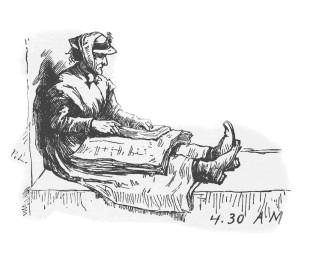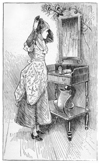 It’s nice up there. It’s one great big room, five times as big as our Sunday School room, with ever so many windows. All around the sides and down the middle, and cross-ways, and out in the wings are shelves, piled full of brand-new dishes. And there are tables all along the walls, and that’s where they make them. I could stand and look all day.