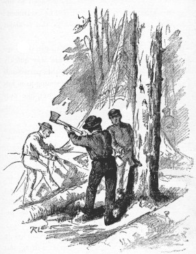 Every log has the initial or mark of the owner chopped deep into the wood to identify it. Then, when the ice breaks up, the logs are sent down the brooks to the rivers and through the rivers to the lakes. The logging camps are disbanded, the loggers return to their homes, and the river-drivers alone are left to begin their duties.