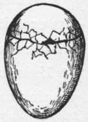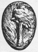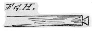 A blunt leaden head is made by pouring three or four melted buck-shot into a cylinder of paper, wrapped around the end of the arrow, slightly larger at the open end, and tied on by a piece of thread. The wood of the arrow must be cut thus: (Fig. H.)