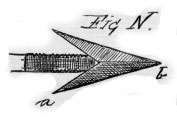 The awls (like Fig. L.) are filed like this into teeth-like 198 notches on the part going into the wood, and roundly sharp on the other part thus: (Fig. M.)