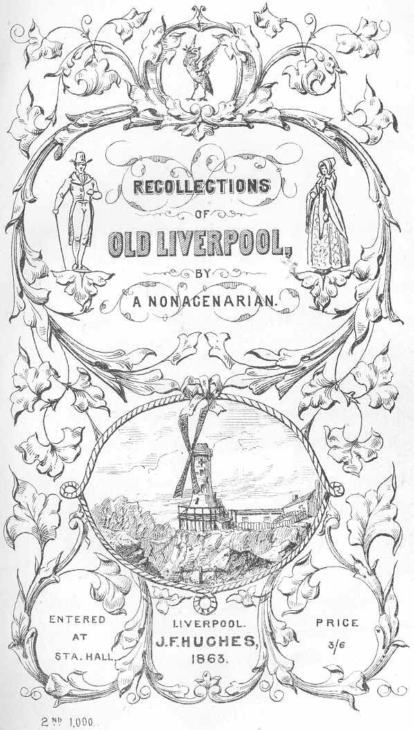 Birth of Author; Strong Memory; A Long-lived Family; Tree in St. Peter’s Church-yard; Cruelty of Town Boys; The Ducking-stool; The Flashes in Marybone; Mode of Ducking; George the Third’s Birthday; Frigates; Launch of the Mary Ellen; The Interior of a Slaver; Liverpool Privateers; Unruly Crews; Kindness of Sailors; Sailors’ Gifts; Northwich Flatmen; The Salt Trade; The Salt Tax; The Salt Houses; Salt-house Dock; The White House and Ranelagh Gardens; Inscription over the Door; Copperas-hill; Hunting a Hare; Lord Molyneux; Miss Brent; Stephens’ Lecture on Heads; Mathews “At Home”; Brownlow Hill; Mr. Roscoe; Country Walks; Moss Lake Fields; Footpads; Fairclough (Love) Lane; Everton Road; Loggerheads Lane; Richmond Row; The Hunt Club Kennels.