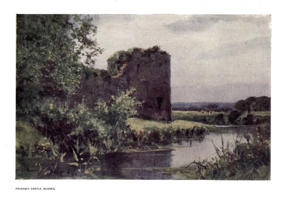 | One of the most picturesque ruins in Sussex and the most interesting of its class in the Kingdom. It was erected by a veteran of Agincourt and is based upon the plan of those existing in Gascony at that time. Only the encircling walls and towers now remain, the interior having been despoiled. The view shows the Gateway and a portion of the defences of the Causeway across the Moat. | ||