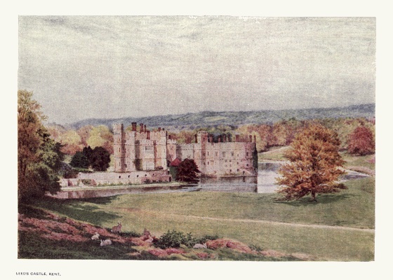 | Leeds Castle is of the Concentric type and stands upon two islands in the middle of a lake which contains about fifteen acres of water. It has a rich history and the remains are of considerable interest, although the earliest work now to be seen is not older than the twelfth century. The Gloriette or Keep is that portion lying to the right in the picture. | ||