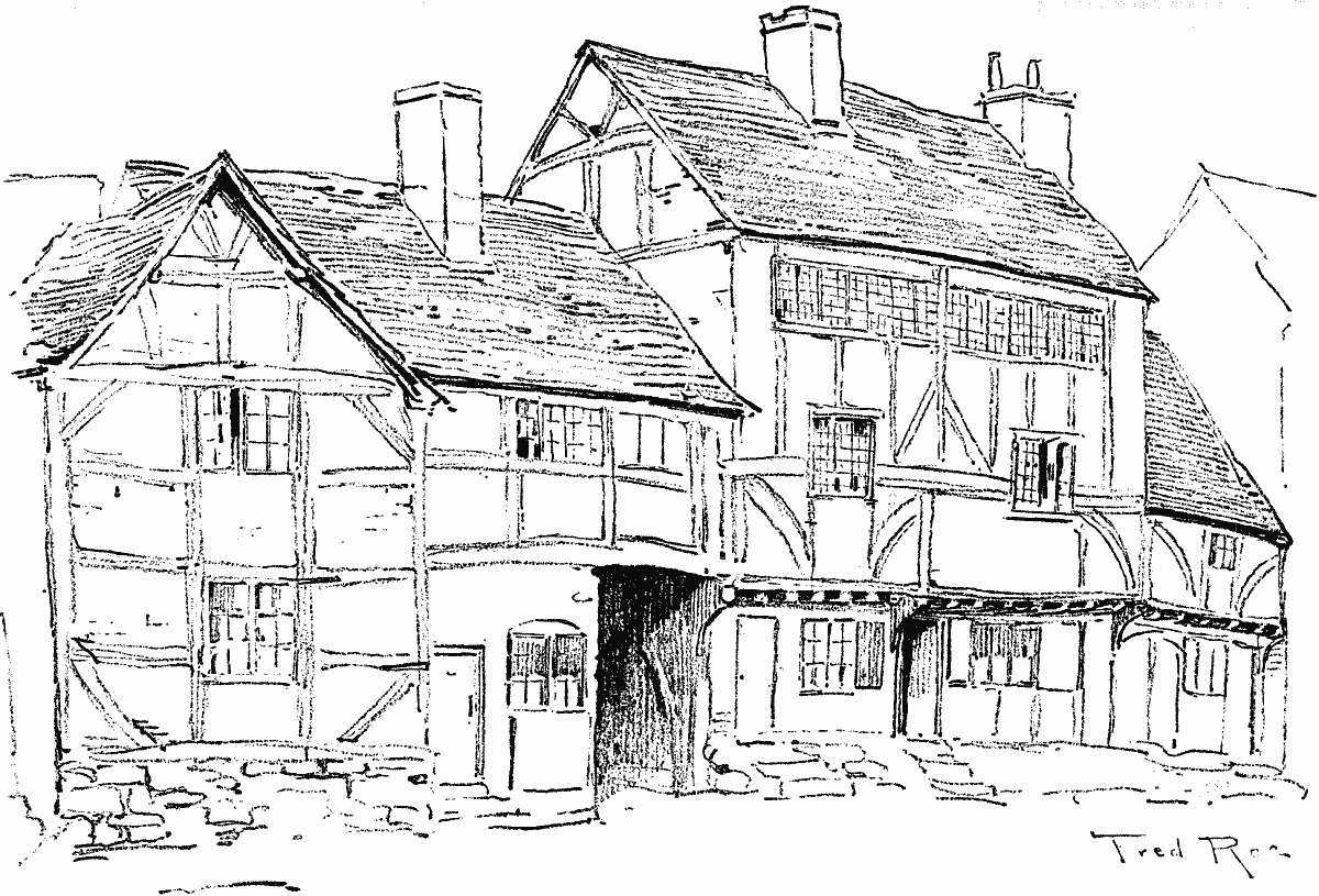 The destruction of ancient buildings always causes grief and distress to those who love antiquity. It is much to be deplored, but in some cases is perhaps inevitable. Old-fashioned half-timbered shops with small diamond-paned windows are not the most convenient for the display of the elegant fashionable costumes effectively draped on modelled forms. Motor-cars cannot be displayed in antiquated old shops. Hence in modern up-to-date towns these old buildings are doomed, and have to give place to grand emporiums with large plate-glass windows and the refinements of luxurious display. We hope to visit presently some of the old towns and cities which happily retain their ancient beauties, where quaint houses with oversailing upper stories still exist, and with the artist's aid to describe many of their attractions.