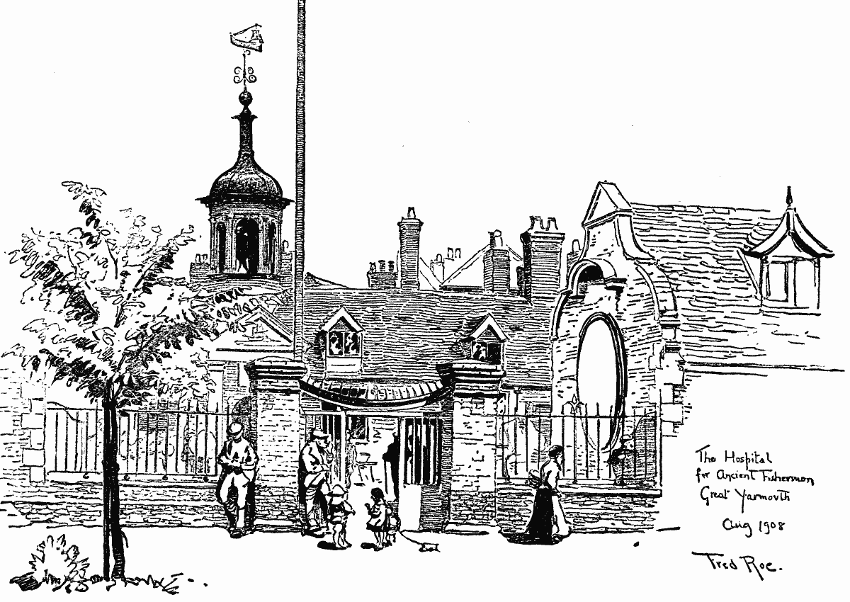 These walls guard much that is important. The ecclesiastical buildings are very fine, including the largest parish church in England, founded by the same Herbert de Losinga whose good work we saw at King's Lynn. The church of St. Nicholas has had many vicissitudes, and is now one of the finest in the country. It was in medieval times the church of a Benedictine Priory; a cell of the monastery at Norwich and the Priory Hall remains, and is now restored and used as a school. Royal guests have been entertained there, but part of the buildings were turned into cottages and the great hall into stables. As we have said, part of the Grey Friars Monastery remains, and also part of the house of the Augustine Friars. The Yarmouth rows are a great feature of the town. They are not like the Chester rows, but are long, narrow streets crossing the town from east to west, only six feet wide, and one row called Kitty-witches only measures at one end two feet three inches. It has been suggested that this plan of the town arose from the fishermen hanging out their nets to dry and leaving a narrow passage between each other's nets, and that in course of time these narrow passages became defined and were permanently retained. In former days rich merchants and traders lived in the houses that line these rows, and had large gardens behind their dwellings; and sometimes you can see relics of former greatness—a panelled room or a richly decorated ceiling. But the ancient glory of the rows is past, and the houses are occupied now by fishermen or labourers. These rows are so narrow that no ordinary vehicle could be driven along them. Hence there arose special Yarmouth carts about three and a half feet wide and twelve feet long with wheels underneath the body. Very brave and gallant have always been the fishermen of Yarmouth, not only in fighting the elements, but in defeating the enemies of England. History tells of many a sea-fight in which they did good service to their king and country. They gallantly helped to win the battle of Sluys, and sent forty-three ships and one thousand men to help with the siege of Calais in the time of Edward III. They captured and burned the town and harbour of Cherbourg in the time of Edward I, and performed many other acts of daring.