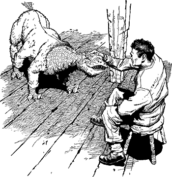The talker returned quickly with a stingwing, tied by one leg to a length of leather. It flapped and shrieked as he carried it in.