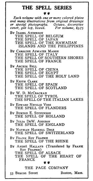 I wish to thank Her Excellency, Madame Havenith, wife of the Belgian Minister in the United States, for information, letters and photographs, and Mrs. Abbot L. Dow, whose father, General Sanford, was one of the most popular American Ministers ever in Belgium, as well as Miss Helen North, who lived for many years in that beautiful country. I wish, also, to thank the National Magazine for the use of a portion of the chapter on Motoring in Flanders. My thanks are due to Miss Gilman and Miss Crosby, too, for their kind assistance.