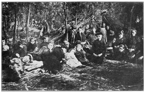 Throughout the winter everybody knitted madly. The unemployed were set to work at small pay making garments, and people literally took their clothes off their backs to send. Plays, concerts, lectures, moving picture shows and rummage sales took in money which was later turned into food.