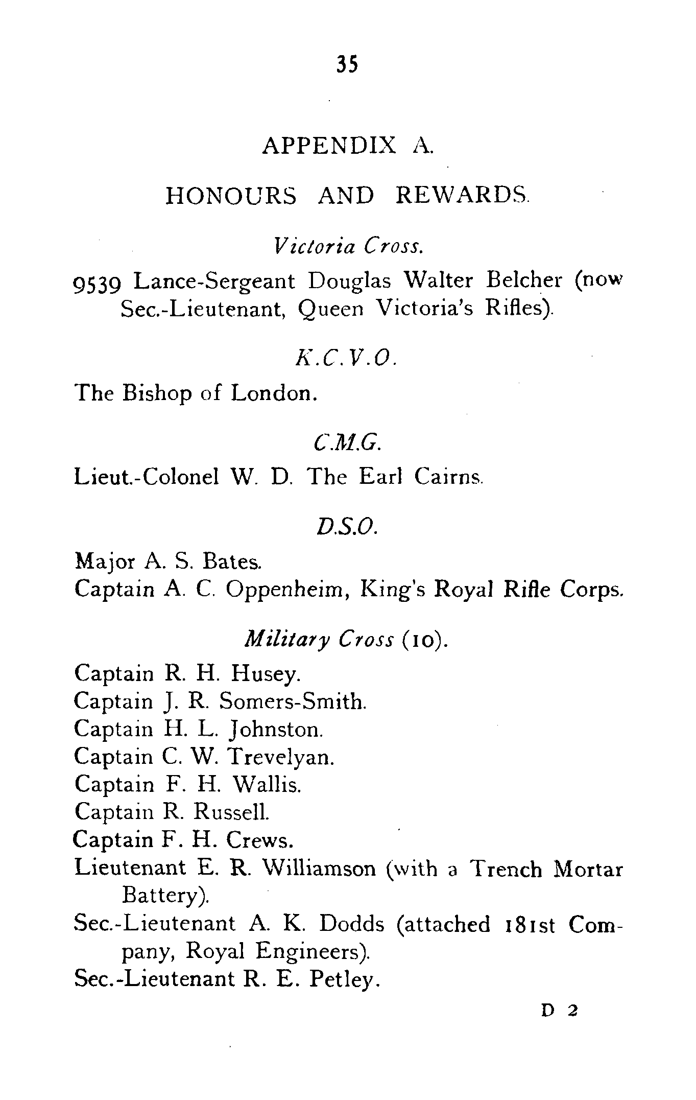 | Earl Cairns (late Rifle Brigade) | 1913 | 1915. |