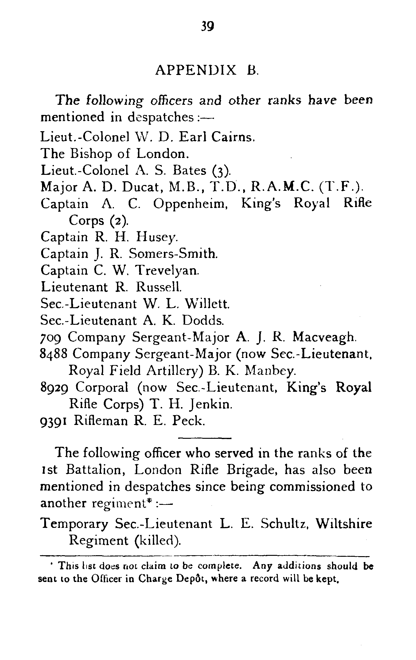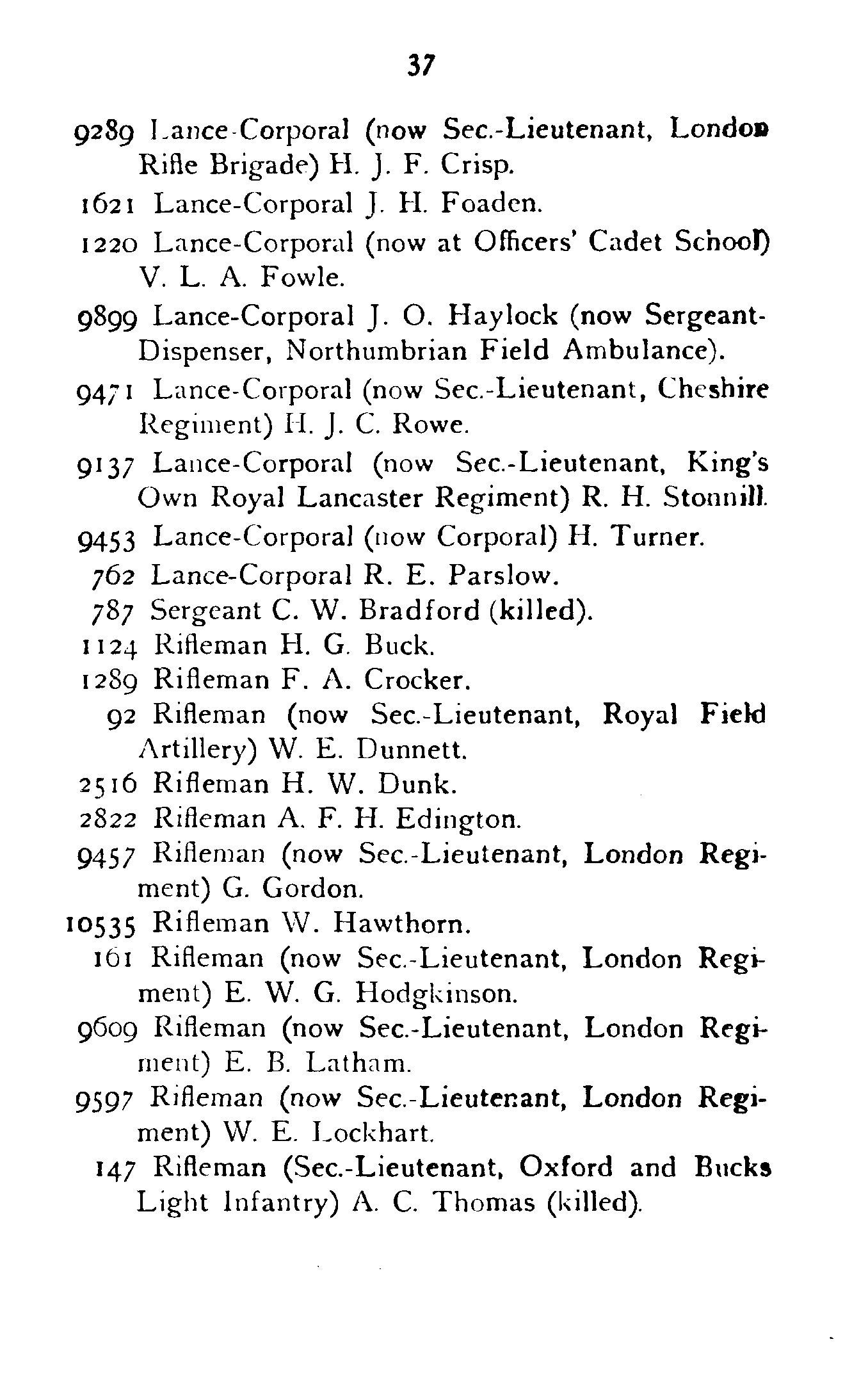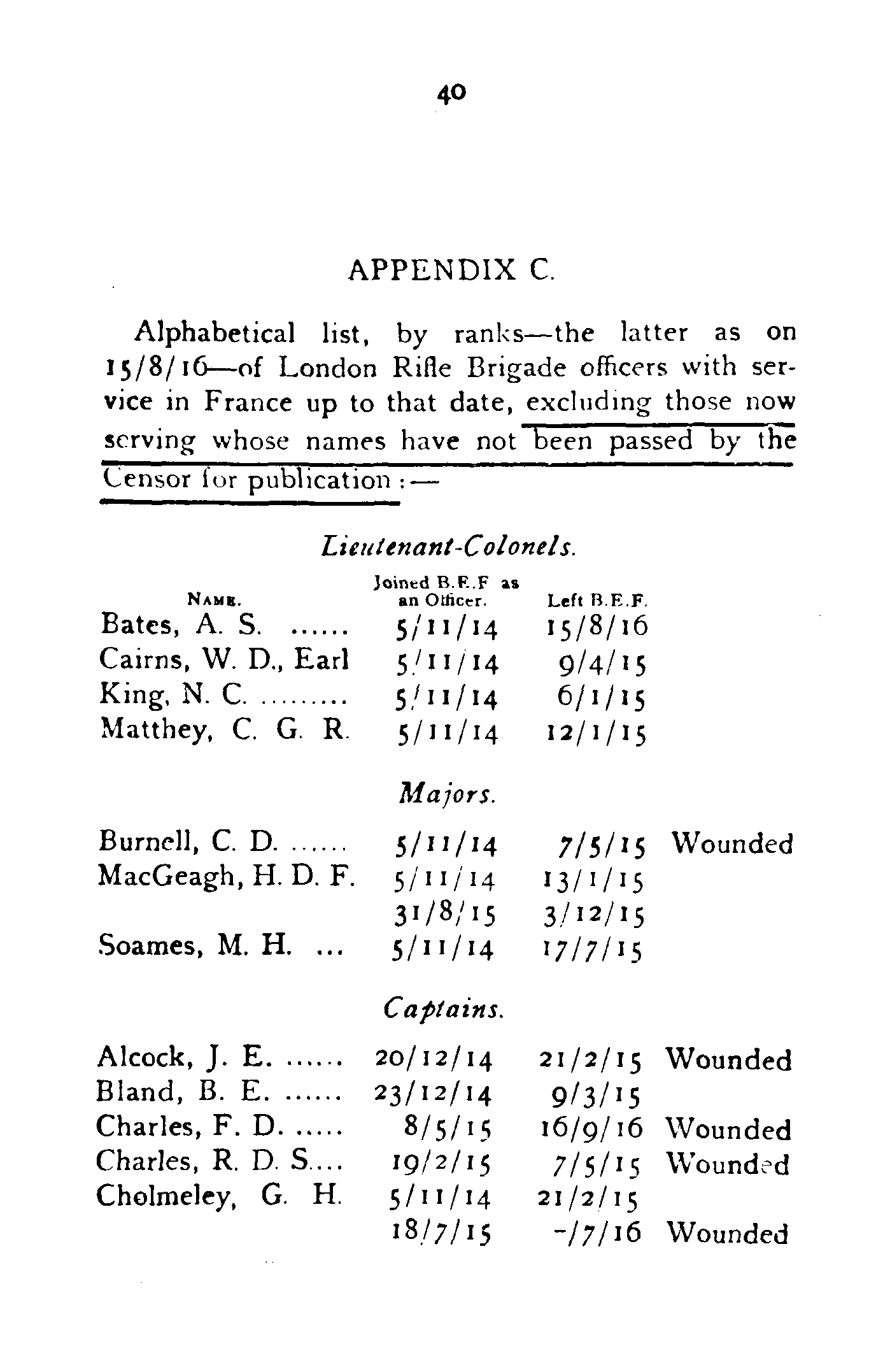| A. S. Bates (Ex London Rifle Brigade) | 16/3/15 | 15/8/16. |