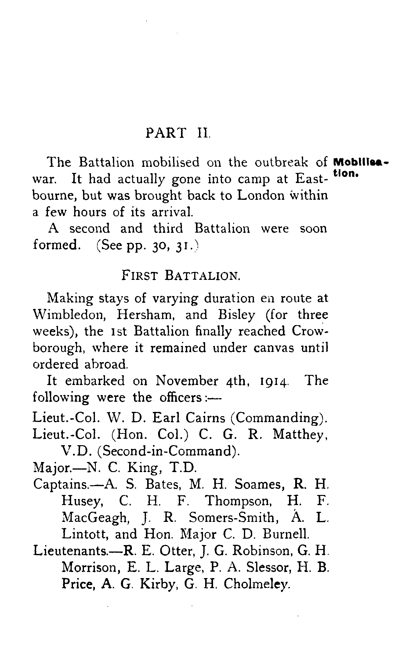 It embarked on November 4th, 1914. The following were the officers:—