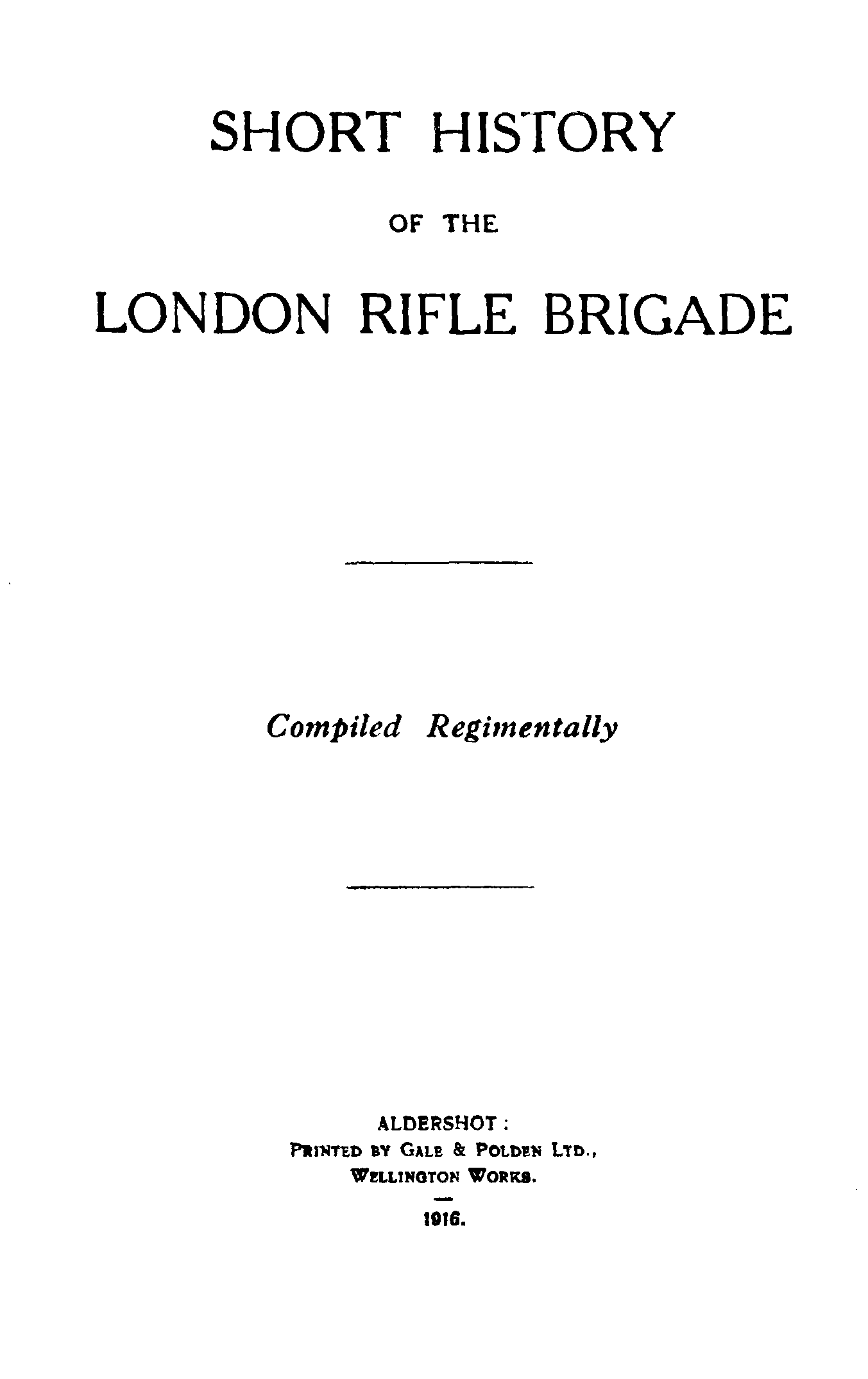 The London Rifle Brigade, formerly the 1st London Volunteer Rifle Corps (City of London Rifle Volunteer Brigade), and now, officially, the 5th (City of London) Battalion, The London Regiment, London Rifle Brigade, familiarly known to its members and the public generally by the sub-title or the abbreviation "L.R.B.," was founded July 23rd, 1859, at a meeting convened by the Lord Mayor. It has always been intimately associated with the City of London, its companies being under the patronage of the various Wards.