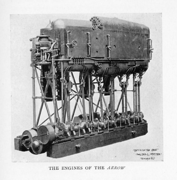 Compressed air was turned into the ballast tanks, the water forced out so that the boat's buoyancy was increased, and she floated in a semi-awash, or light, condition. The engineer turned off the current from the storage batteries, threw off the motor from the propeller shaft, and connected the gasoline engine, started it up, and inside of five minutes from the time the Fulton was navigating the waters of the Sound at a depth of thirty feet she was sailing along on the surface like any other gasoline craft.
