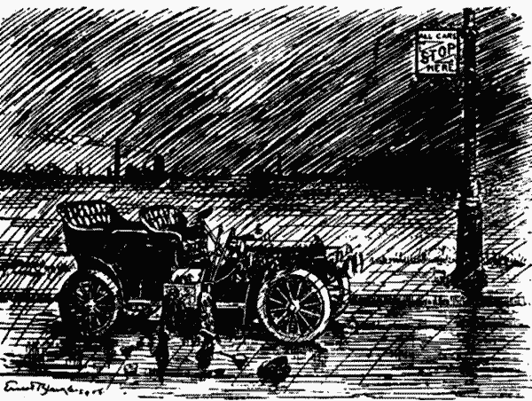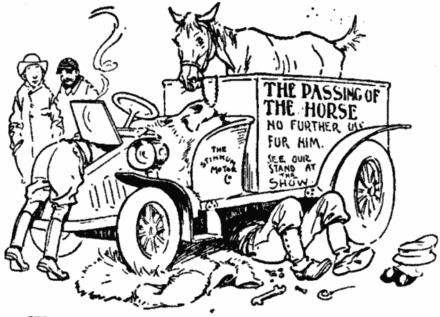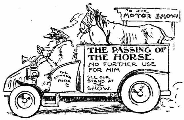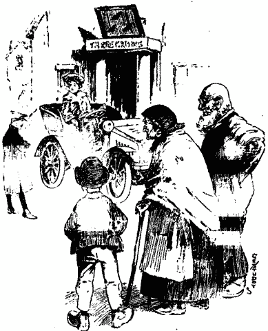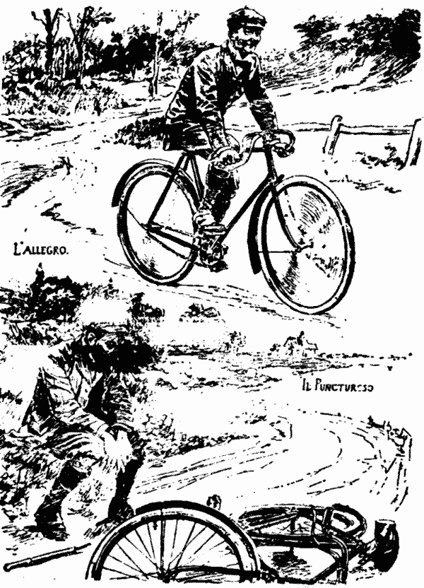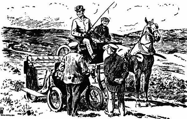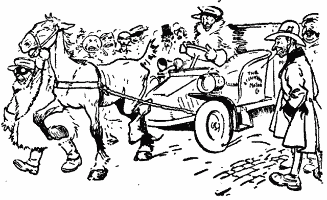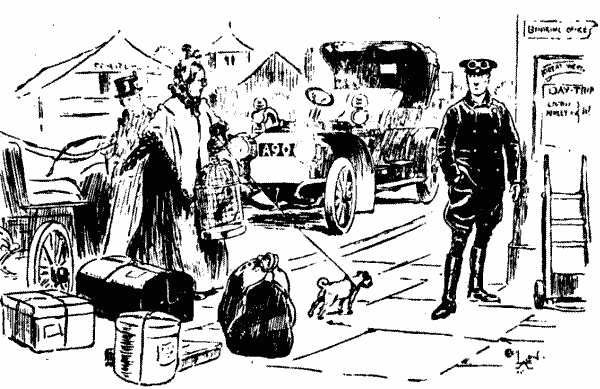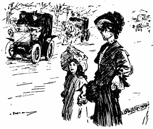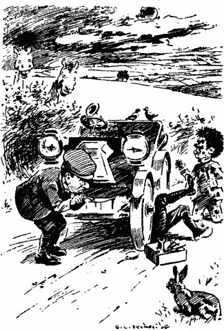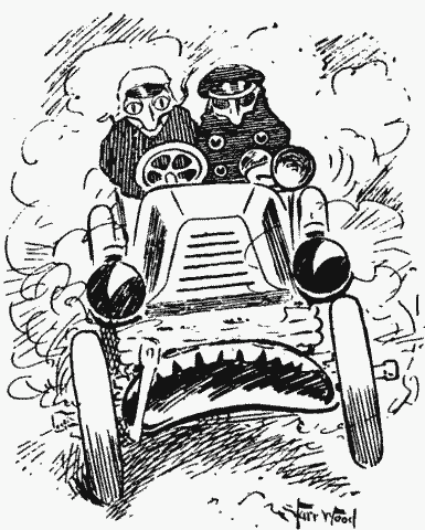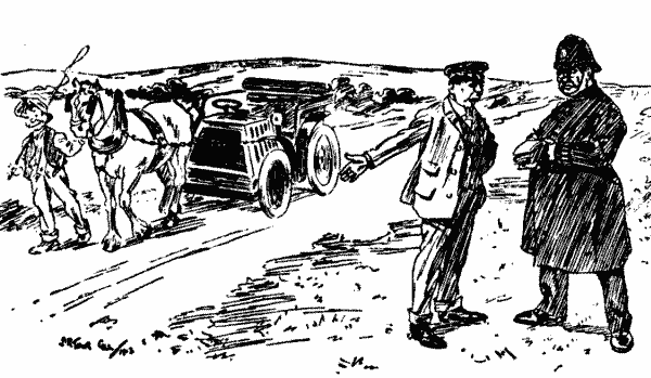 Among the characteristics which are essentially British, is the tendency to receive almost any innovation, be it a new style of dress or a new method of locomotion, with some degree of distrust which shows itself in satirical criticism; to be followed soon after by the acceptance of the accomplished fact and complete approval. In this trait of our national character, as in all others, Mr. Punch proves himself a true born Britisher. When the bicycle was first coming into popularity, he seemed rather to resent the innovation, and was more ready to see the less attractive side of cycling than its pleasures and its practical advantages. So, too, with the automobile. Only recently has Mr. Punch shown some tendency to become himself an enthusiast of the whirling wheel.