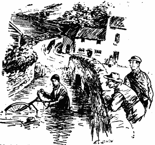 "No; but I saw a man sitting at the bottom of the hill mending an old umbrella!"