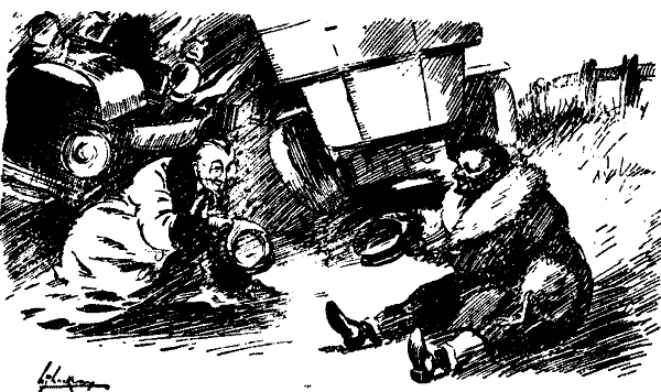 Owner of violently palpitating motor car. "There's no need to be alarmed. It will be all right as soon as I've discovered the what-d'ye-call-it!"