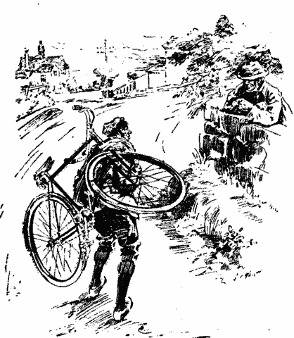 "Oh, did you see a gentleman on a bicycle as you came up?"