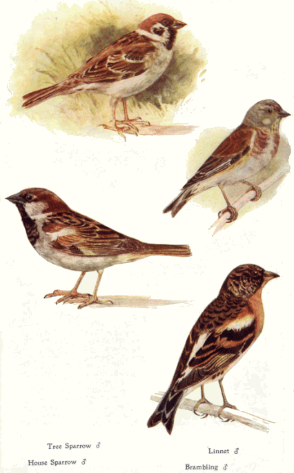 The first numeral refers to the text, the second to the illustration facing the page named. Auk, Little: 294; p. 291Avocet: 252; p. 247 Bearded Reedling: 41; p. 46 Bee-eater: 135; p. 129 Bittern: 173; p. 231 Blackbird: 7; p. 3 Blackcap: 23; p. 17 Brambling: 97; p. 85 Bullfinch: 101; p. 97 Bunting, Cirl: 108; p. 108 " Corn (or common): 106; p. 108 " Lapland: 111; p. 108 " Reed: 109; p. 108 " Snow: 110; p. 108 " Yellow (Yellow Hammer): 107; p. 116 Burgomaster: see Gull, Glaucous Bustard, Great: 236; p. 220 Buzzard, Common: 150; p. 149 " Honey: 151; p. 149 " Rough-legged: 151; p. 149 Capercaillie: 212; p. 220 Chaffinch: 95; p. 96 Chiff-chaff: 30; p. 30 Chough: 56; p. 59 Coot: 233; p. 231 Cormorant, Common: 165; p. 166 " Green: 167; p. 166 Courser, Cream-coloured: 240; p. 262 Crake, Corn: 228; p. 230 " Little: 230; p. 230 " Spotted: 229; p. 230 Crane: 234; p. 234 Crested Tit: see Titmice Crossbill: 103; p. 138 " Two barred (White-winged): 106; p. 138 Crow, Carrion: 65; p. 68 " Hooded: 67; p. 68 Cuckoo: 137; p. 138 Curlew, Common: 273; p. 246 Dabchick: see Grebe, Little Dipper: 51; p. 47 Diver, Black-throated: 298; p. 291 " Great Northern: 297; p. 291 " Red-throated: 299; p. 291 Dotterel: 244; p. 246 Dove, Ring (Wood Pigeon): 203; p. 208 " Rock: 208; p. 208 " Stock: 207; p. 208 " Turtle: 209; p. 208 Duck, Black: see Scoter, Black " Eider: 197; p. 198 " Goldeneye: 195; p. 191 " Long-tailed: 196; p. 198 " Pintail: 190; p. 190 " Scaup: 194; p. 191 " Tufted: 194; p. 191 " Wild: 185; p. 179 Dunlin: 262; p. 262 Eagle, Golden: 152; p. 152[Pg 324] " Sea, or White-tailed: 153; p. 152 " Spotted: 152; p. 152 Falcon: see Peregrine Falcon Fern Owl: see Nightjar Fieldfare: 5; p. 2 Flycatcher, Pied: 79; p. 69 " Spotted: 77; p. 69 Fulmar: see Petrel, Fulmar Gadwall: 189; p. 179 Gallinule: see Moor-hen Gannet: 168; p. 167 Garganey: 192; p. 190 Godwit, Bar-tailed: 272; p. 247 " Black-tailed: 273; p. 270 Gold Crest: see Wren Goldfinch: 88; p. 96 Goosander: 201; p. 199 Goose, Bean: 178; p. 178 " Bernicle: 181; p. 166 " Brent: 180; p. 166 " Grey Lag: 176; p. 178 " Pink-footed: 179; p. 178 " White-fronted: 177; p. 178 Grebe, Black-necked: 308; p. 298 " Great-crested: 300; p. 298 " Little: 302; p. 199 " Red-necked: 301; p. 298 " Slavonian: 302; p. 298 Greenfinch: 86; p. 69 Greenshank: 271; p. 270 Grosbeak, Pine: 102 Grouse, Black: 213; p. 209 " Red: 215; p. 209 Guillemot, Common: 292; p. 290 " Black: 294; p. 290 Gull, Black or Brown-headed: 281; p. 282 " Common: 283; p. 279 " Glaucous: 287; p. 279 " Great Black-backed: 286; p. 279 " Herring: 285; p. 282 " Kittiwake: 287; p. 282 " Lesser Black-backed: 285; p. 279 " Little: 281; p. 282 Harrier, Hen: 148; p. 148 " Marsh: 147; p. 153 " Montagu's: 149; p. 148 Hawfinch: 87; p. 96 Hawk, Sparrow: 156; p. 153 Heron, Common: 170; p. 234 " Night: 173; p. 234 Hobby: 161; p. 153 Hoopoe: 136; p. 129 Jackdaw: 61; p. 68 Jay: 58; p. 59 Kestrel: 163; p. 148 Kingfisher: 132; p. 129 Kite: 158; p. 149 Kittiwake: see Gull, Kittiwake Knot: 261; p. 257 Lapwing: 247; p. 246 Lark, Shore: 122; p. 117 " Sky: 119; p. 117 " Wood: 122; p. 117 Linnet: 98; p. 85 " Mountain: 100; p. 97 Magpie: 59; p. 59 Martin, House: 83; p. 84 " Sand: 84; p. 84 Merganser: 202; p. 199 Merlin: 162; p. 153 Moor-hen: 231; p. 231 Nettle-creeper: see Whitethroat Nightingale: 17; p. 14 Nightjar: 125; p. 220 Nutcracker: 57; p. 58 Nuthatch: 44; p. 46 Oriole: 53; p. 47[Pg 325] Osprey: 154; p. 152 Owl, Barn or White: 142; p. 139 " Long-eared: 144; p. 139 " Short-eared: 145; p. 139 " Tawny or Brown: 146; p. 139 Ox-bird: see Dunlin Ox-eye: see Great Tit Oyster-catcher: 248; p. 278 Partridge, Common: 222; p. 209 " Red-legged: 225; p. 209 Penguin: see Razor-bill Peewit: see Lapwing Peregrine Falcon: 159; p. 148 Petrel, Fork-tailed: 308; p. 299 " Fulmar: 304; p. 299 " Storm: 307; p. 299 Phalarope, Grey: 253; p. 247 " Red-necked: 253; p. 247 Pheasant: 219; p. 220 Pipit, Meadow: 117; p. 116 " Rock: 118; p. 116 " Tree: 116; p. 116 Pigeon, Wood; 203; p. 208 Plover, Cream-coloured: 240 " Golden: 240; p. 235 " Green: 247 " Grey: 242; p. 235 " Kentish: 246; p. 235 " Ringed: 244; p. 235 " Stone or Great Norfolk: 239; p. 246 Pochard (or Dunbird): 193; p. 191 Pratincole: 238; p. 221 Ptarmigan: 217; p. 221 Puffin: 295; p. 290 Quail: 226; p. 221 Raven: 63; p. 59 Razor-bill: 291; p. 290 Redbreast: see Robin Redpoll, Lesser: 99; p. 97 " Mealy: 99; p. 97 Redstart: 14; p. 9 " Black: 16; p. 9 Redshank; 269; p. 270 Redwing: 2; p. 2 Reedling, Bearded: see Bearded Reedling Reeve, Female of Ruff: 266 Ring Ouzel: 10; p. 3 Ringtail: see Hen Harrier Robin: 16; p. 14 Roller: 134; p. 129 Rook; 68; p. 68 Ruff and Reeve: 266; p. 270 Sanderling: 260; p. 257 Sandgrouse: 211; p. 221 Sandpiper, Common: 268; p. 263 " Curlew: 261; p. 263 " Green: 267; p. 263 " Purple: 264; p. 263 " Wood: 268; p. 257 Scaup: 194; p. 191 Scoter, Black (or Common): 199; p. 198 " Surf: 201 " Velvet: 200; p. 198 Shag: 167; p. 166 Shearwater, Great: 305; p. 283 " Manx: 305; p. 299 Sheldrake: 184; p. 179 Shoveler: 189; p. 179 Shrike, Great Grey: 73; p. 58 " Lesser Grey: 74 " Red-backed: 74; p. 58 " Woodchat: 76; p. 58 Siskin: 90; p. 96 Skua, Great: 288; p. 283 " Richardson's: 290; p. 283 " Twist-tailed: 289; p. 283 Smew: 202; p. 199 Snipe, Common; 257; p. 256 " Jack: 259; p. 256 " Great or Solitary: 256; p. 256 Sparrow: House: 92; p. 85[Pg 326] " Hedge: 20; p. 14 " Tree: 94; p. 85 Spoonbill, White: 176; p. 231 Starling: 54; p. 47 " Rose-coloured: 56; p. 47 Stint, Little: 265; p. 262 " Temminck's: 265; p. 262 Stonechat: 13; p. 9 Stork: 175; p. 234 " Black: 175 Swallow: 80; p. 84 " Night: see Nightjar Swan, Bewick's: 181; p. 167 " Whooper or Wild: 180; p. 167 Swift: 123; p. 84 Teal: 191; p. 190 Tern, Arctic: 278; p. 271 " Black: 275; p. 271 " Common: 278; p. 278 " Little: 279; p. 278 " Roseate: 277; p. 271 " Sandwich: 276; p. 271 Thick-knee: see Plover, Great Thrush, Song: 1; p. 2 " Mistle: 1; p. 2 Titmouse, Great: 37; p. 34 " Blue: 39; p. 35 " Cole: 40; p. 35 " Marsh: 41; p. 35 " Bearded: