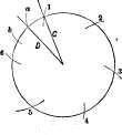 | A line produced; a line bisected; a line bounding a circle; an arc of a circle; segments of a circle; the chord of an arc; a quadrant of a circle | 50 |